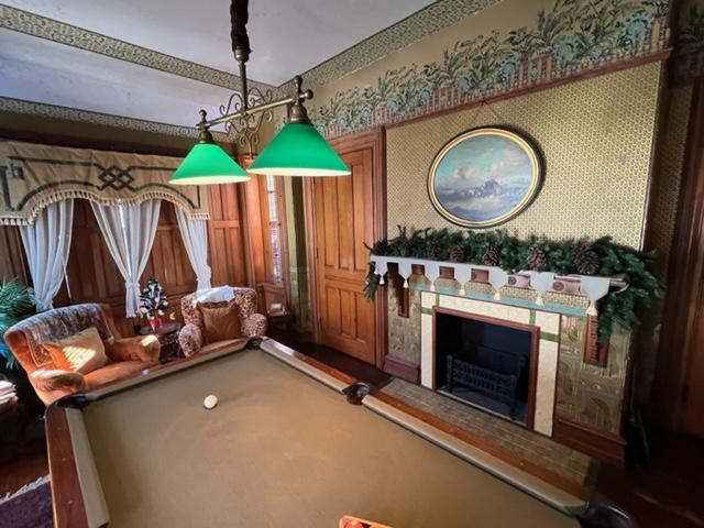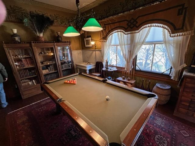 You can see the bedrooms with clothes and accessories, the game room with the billiards and work out objects and the living room, dining room and music room and library. It is how a proper Victorian home was set up at a time when families wanted privacy. The tour took us to each room where it was explained its purpose in a wealthy Victorian home. Most houses at the time would not have been this elaborate.