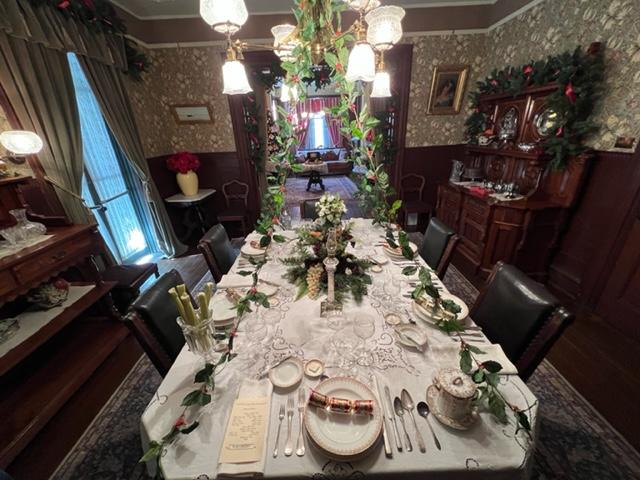 The Dining Room at the Physick Mansion set for Christmas dinner