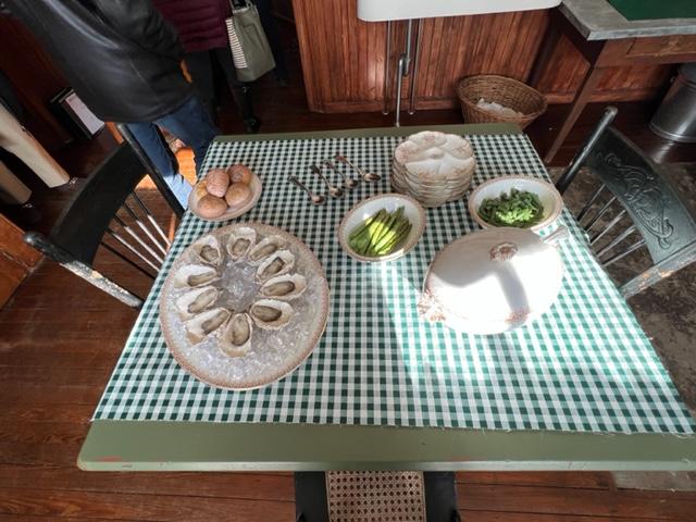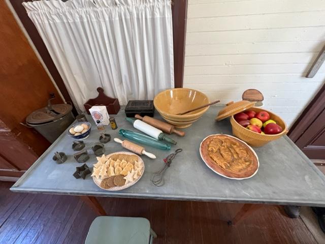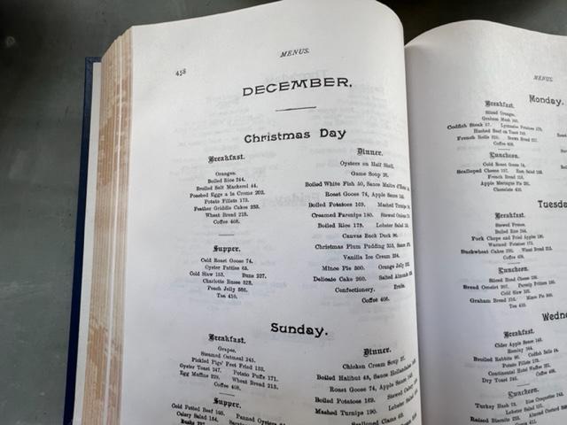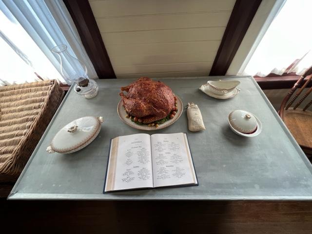 The kitchen was set up for the cooking of the Christmas dinner along with the foods that would have been served and the recipes that would have been used to prepare them. Entertaining during the holidays would not have stopped with just a family dinner as people would be entertaining neighbors, friends and relatives. There would have been teas and receptions on top the formal Christmas dinner to prepare for in a Victorian home.
