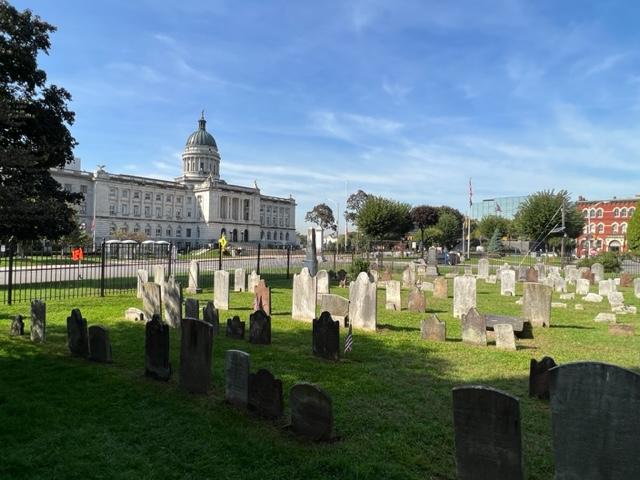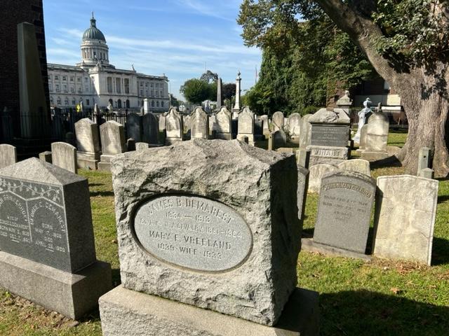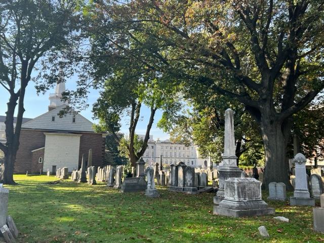 The historic Courthouse of Hackensack, NJ facing the cemetery at the Church.