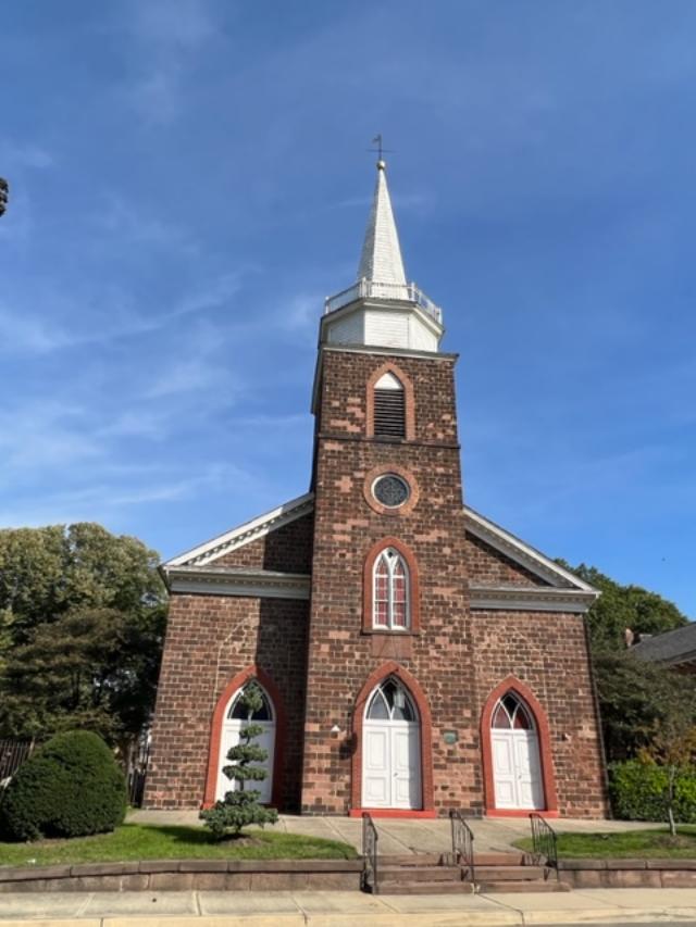 In 1780, during the Revolutionary War, the British invaded Hackensack. They burned the courthouse and jail and threatened to destroy the Church on the Green, which was located adjacent to the aforementioned buildings. Fortunately, the church was spared. Dutch Colonial architecture with sandstone walls being the prominent feature of the building. Some aspects, especially the arched and pointed windows, appear to have Gothic elements.