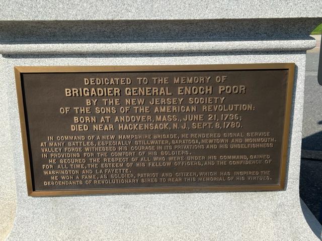 Additionally, both Washington and the Marquis de Lafayette were in attendance at Poor’s funeral. Enoch Poor’s gravestone reads: “In Memory of the Hon’ble Brigadier General Enoch Poor of the State of New Hampshire who Departed this Life on the 8 day of Sept: 1780 aged 44 years/Washington, Lafayette and a portion of the American army attended the burial of Gen. Poor. In 1824, Lafayette visited this grave and turned away much affected, exclaimed, “Ah, that was one of my Generals!” Poor died in 1780, before the close of the Revolutionary War, so this gravestone is clearly not the original.