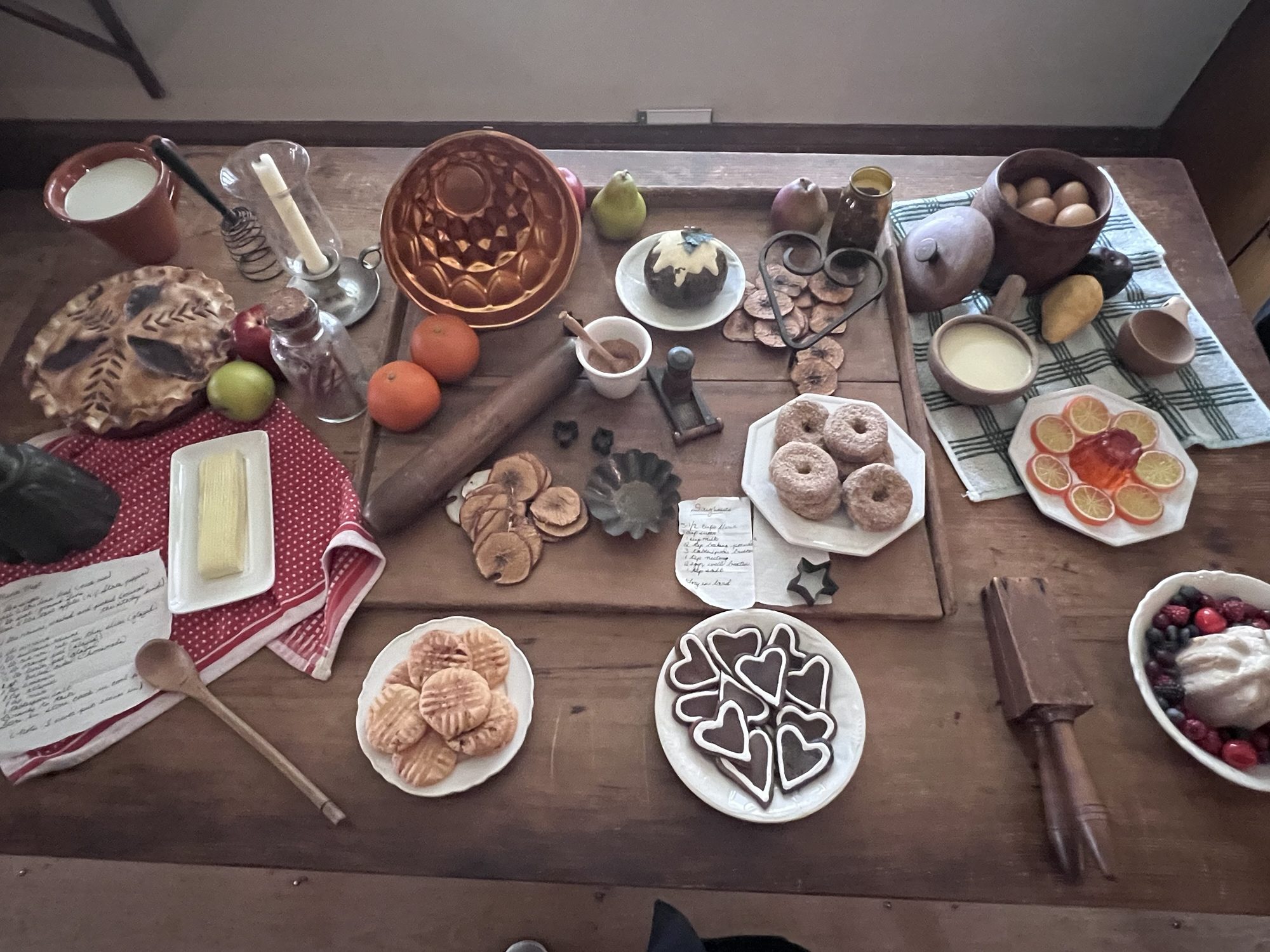 The delicious foods prepared for the family meals including cookies, pies and a favorite treat, doughnuts