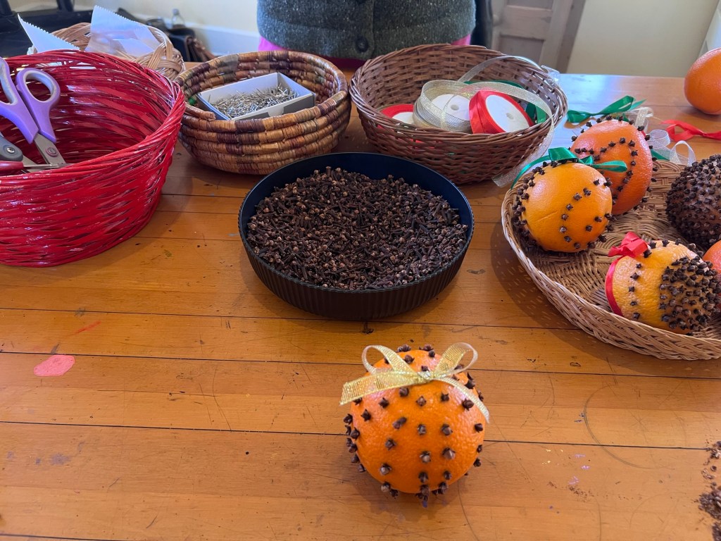 After the tour was over, I joined other guests making crafts such as Christmas crackers, creating ornaments and making pumices, the oranges studded with clovers.