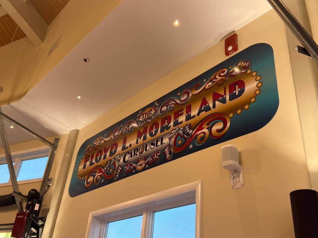 The inside of has a couple of small displays which will be expanded on in the future. Dr. Moreland’s collection of carousel horses were on display in two cases around the building.