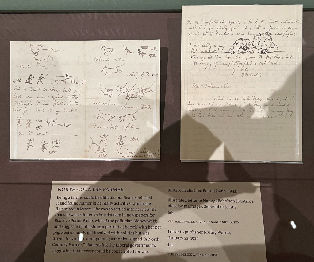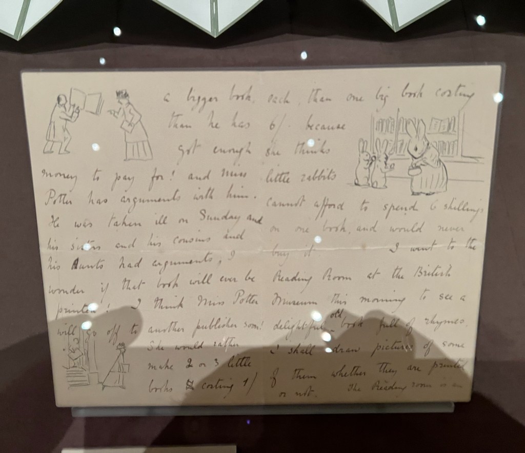 The exhibition is broken into two parts. The first part is on her early life in London with her family and her personal life as a child and an early adult. The second half of the exhibition is on her early books, manuscripts and letters. Then her later life as a ‘gentle farmer’ who ended up preserving and donation over 4000 acres of Lake District land for later generations to enjoy.