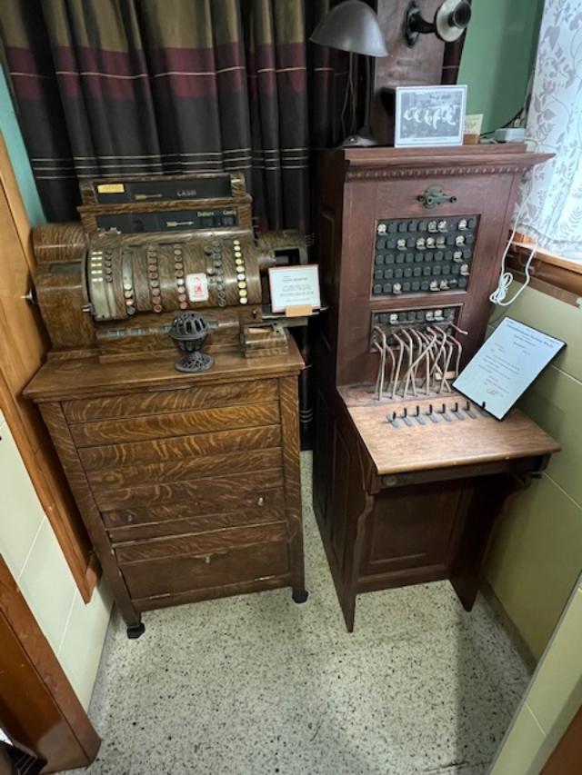 The Cash Register and switchboard machine on the second floor. The cash register was originally used in Loeb’s Store and last used in Harl’s Shoe Store. The switchboard operation was from Punxsutawney.