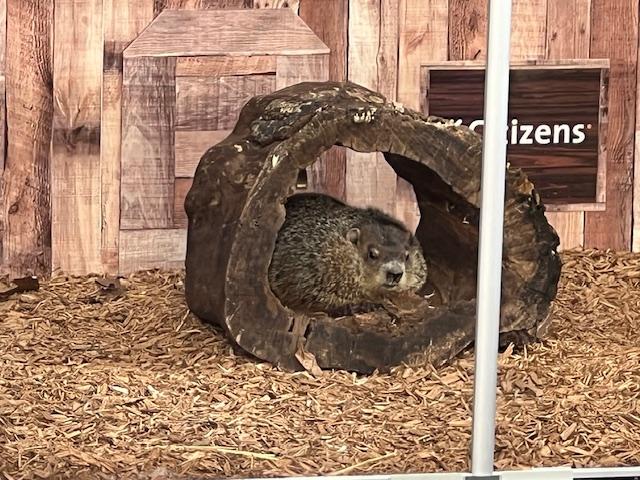 Meanwhile in Punxsutawney Phil predicted six more weeks of Winter. It depends on who you want to listen to in the forecast. Once they finished the ceremony, everyone took pictures with Chuck and then they put the poor, cold guy away.