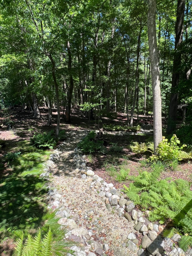 The back paths were dense with trees and brush but you could still hear the running of water and the birds calling.