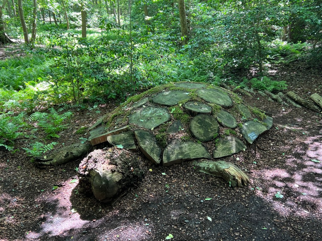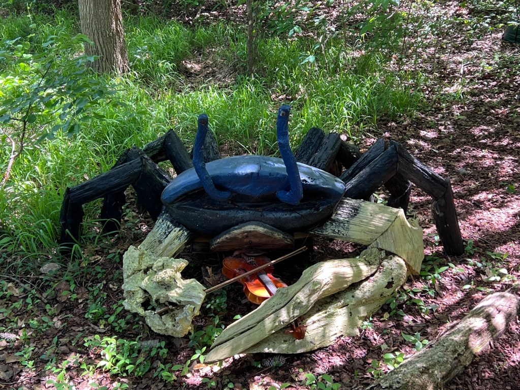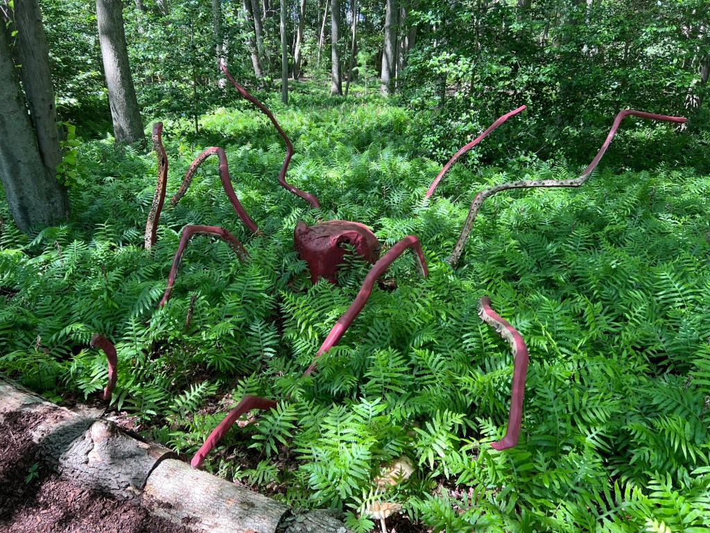 As I walked through the woods admiring nature, I came across a camel who was taking a break at the bridge. These sculptures are very creative and fun.
