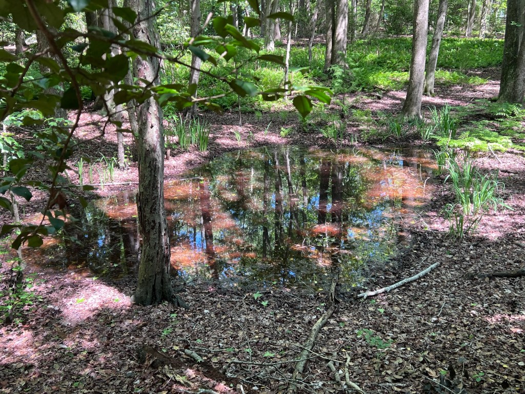 At the Woodlands’ 1,000 feet of shoreline, Pepper Creek is a briny mix of salt water and fresh water. The eight-mile-long creek originates near the Cypress Swamp in southern Delaware, 3 miles north of the Delaware-Maryland state line. It flows from the DBG shoreline into the Indian River Bay.