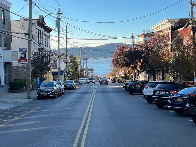 Downtown Irvington, NY in the Fall looking over the Hudson River
