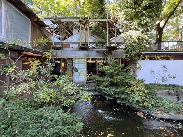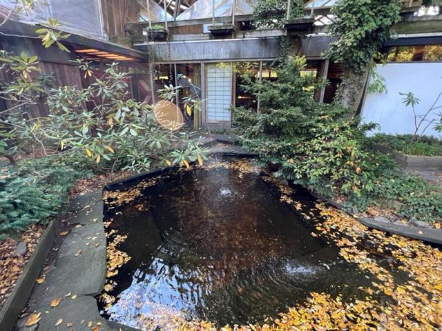 Consistent with this, the design changed dramatically during the almost forty years Rose lived here. From 1961, when Rose was invited by the Japanese government to participate in a World Design Conference (WoDeCo), he founded a mirror to his modern American design sensibility in the ancient culture of Japan. In changes such as the addition of the roof garden and zendo in the early 1970’s a fusion of ancient East and modern West is effected as Rose compares the filigrees of plant forms to the filigrees of structure. “In the bare architecture outline is a pattern of organic (rather than cosmetic) decoration and an inter division of space.”
