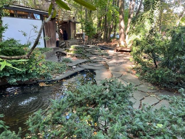 We were able to walk all around the house and what struck me was the use of nature in the design of the house. He used the trees and brook on the property to achieve the aesthetic of the design of the house but over the years it has been used against it as the trees have either grown too big around the house or have died, in which one did and caused thousands of dollars of damage on the house. Still, it was an interesting tour of how the house was used as a studio and a family home for him, his mother and unmarried sister.