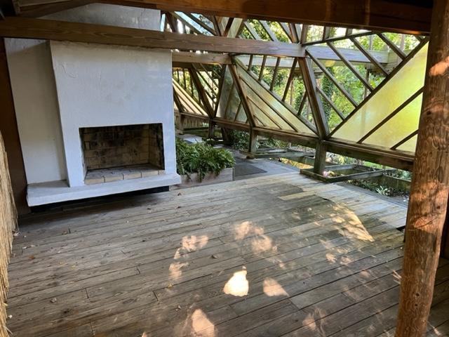 The rehabilitation reversed rampant deterioration of the previous decade. Support systems were revamped. Fire damage was repaired. The leaking roof was rebuilt and Rose’s roof garden was reconstructed. Salvageable wood was reconditioned and woven with new lumber. Garden pools were rebuilt and important planting edges re-established. Murals and other original artwork were reconditioned. Through the center’s ongoing efforts, Rose’s enduring creation has entered a new stage of its metamorphosis from which it will continue to evolve.