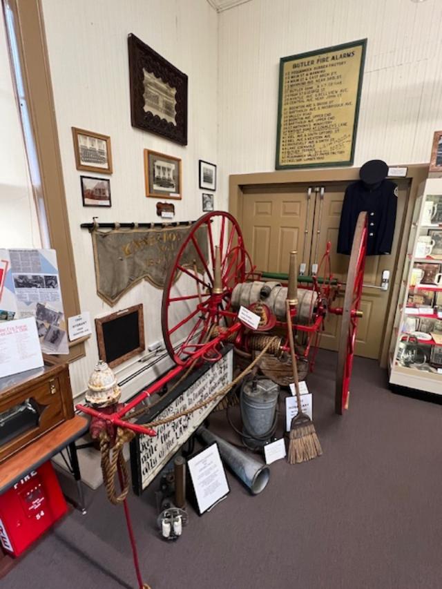 The Butler Museum main gallery with the Ace Rubber exhibition as well as the Butler Fire and Police departments. The displays represent years of tradition in the town.