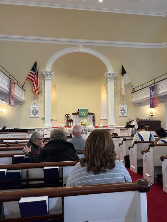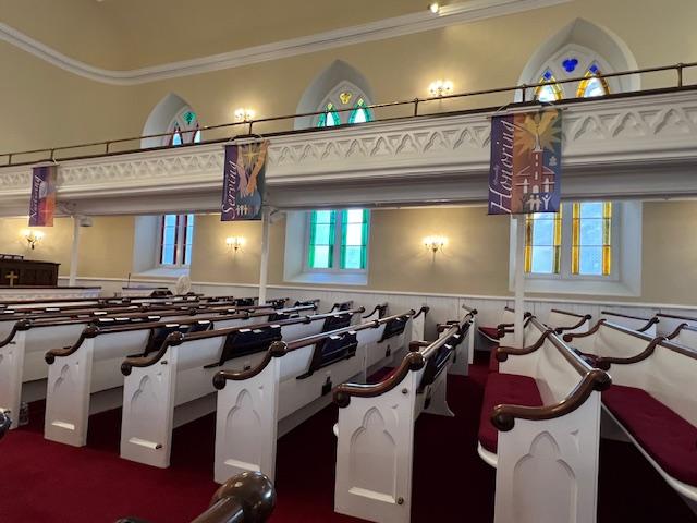 The inside of the church during Sunday services