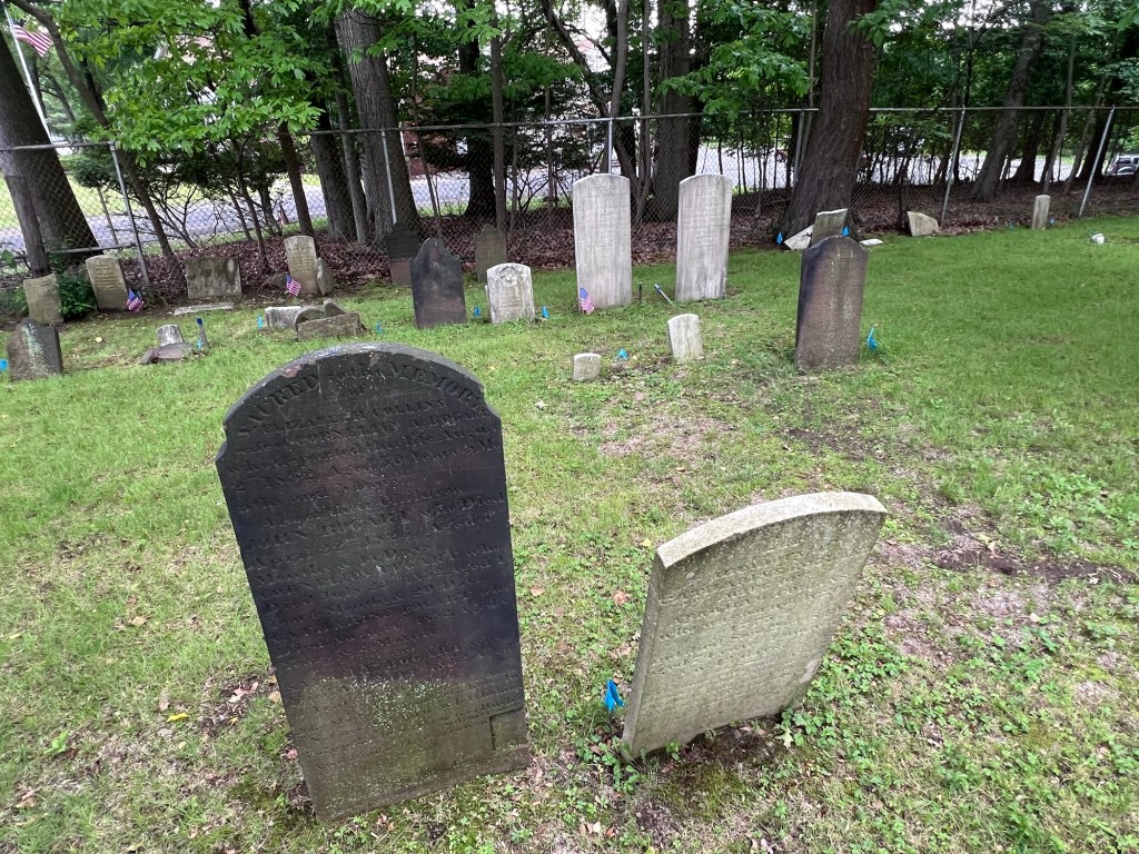 The Union Cemetery to find the graves of Revolutionary War veterans and found some but not all of them. The tombstones are so worn after over two hundred years that they either had disappeared or were so worn you could not read them.
