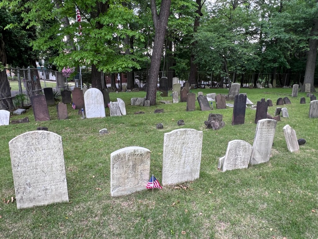 The cemetery (technically a graveyard since there was a church once here) is the final resting place of many of Bergen Counties Revolutionary War veterans as well as many prominent families including the Demarest, the Bogert and the Christie families. These were some of the founding families of Bergen County.