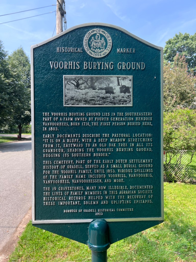 The historic sign of the Voorhis Burying Ground