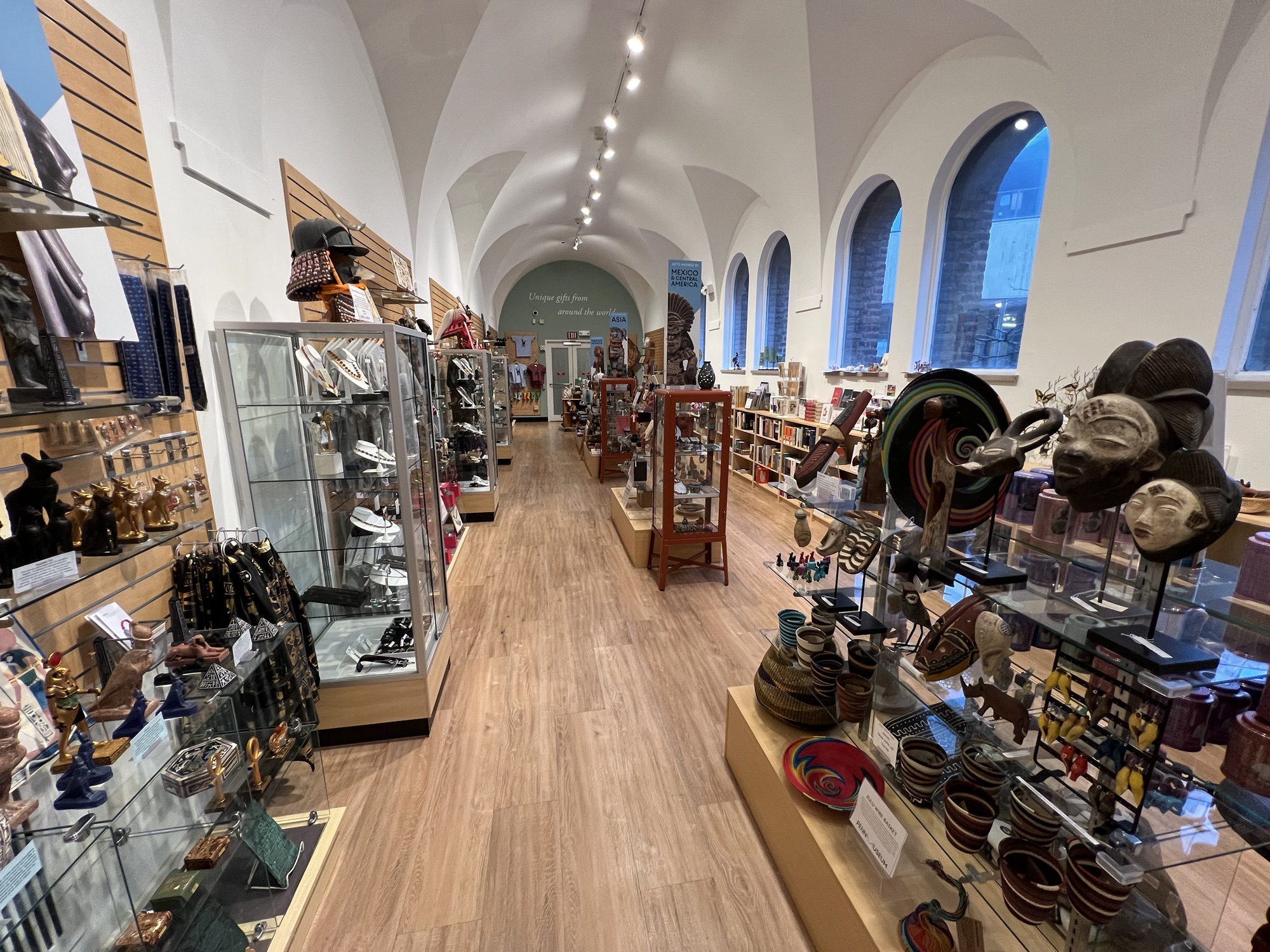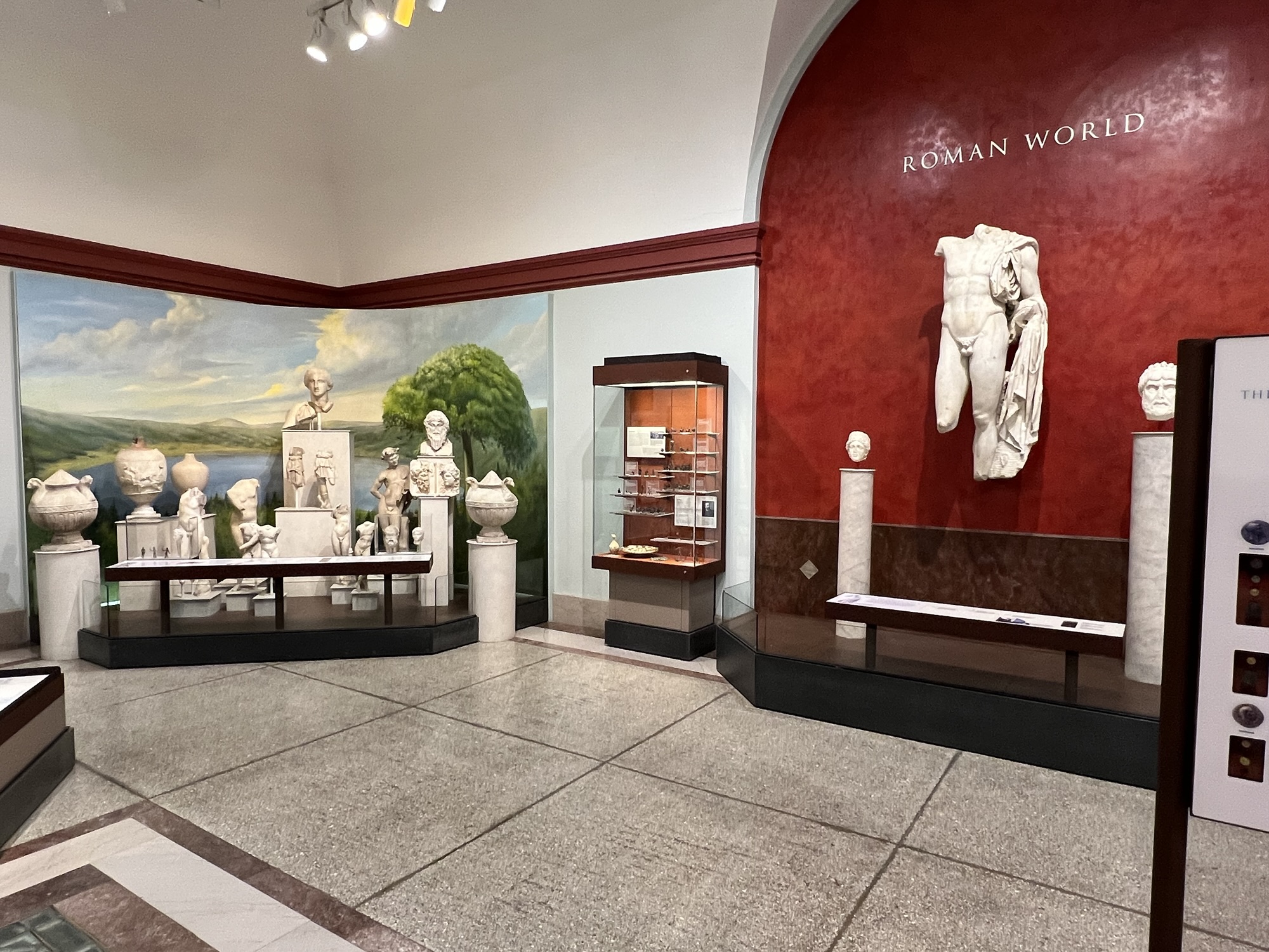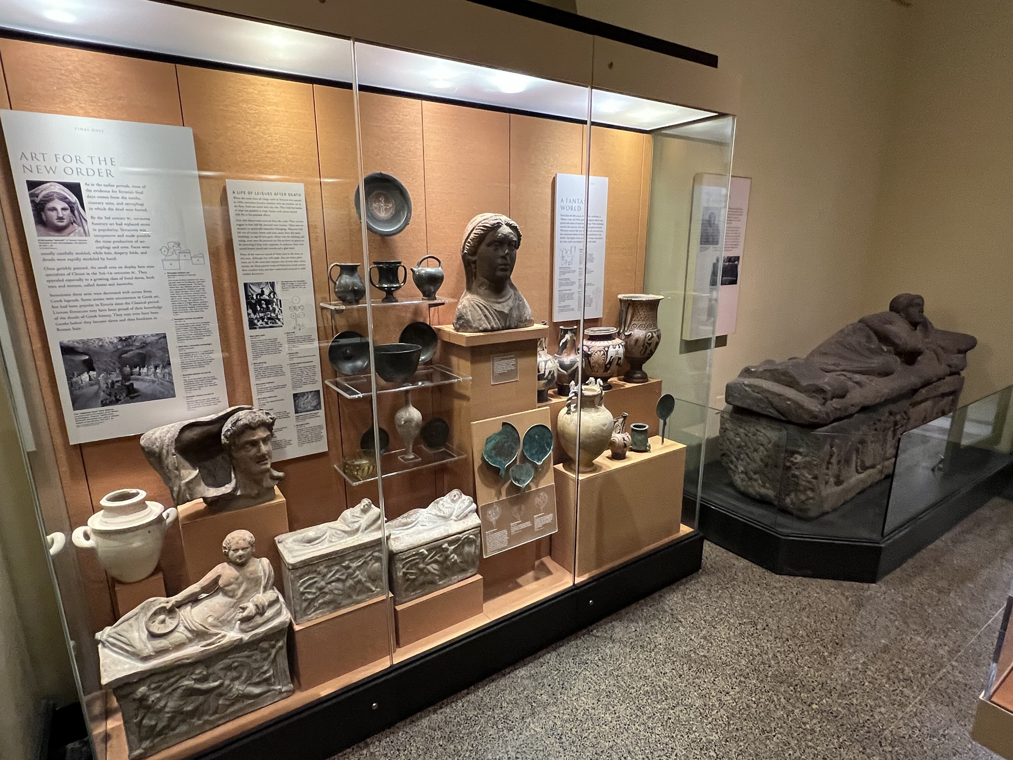 The display case in the main library showcases the collection of China and Silverware and decorative objects that are in the collection.