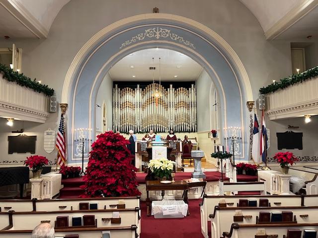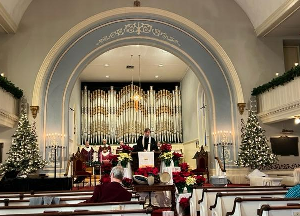 The Inside of the Old Paramus Reformed Church for the Epiphany holidays in 2023.