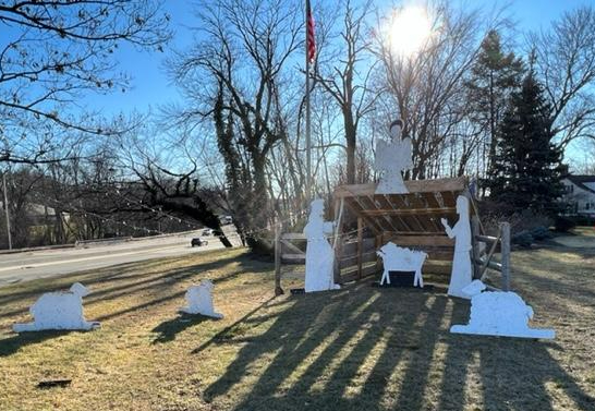 Nativity scene at the Paramus Reformed Church during Christmas 2022 at night