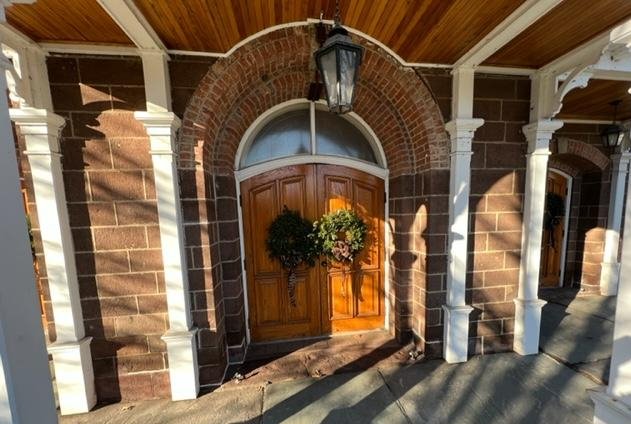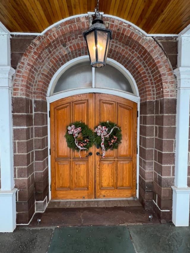 The entrance to the Old Paramus Reformed Church at Christmas time