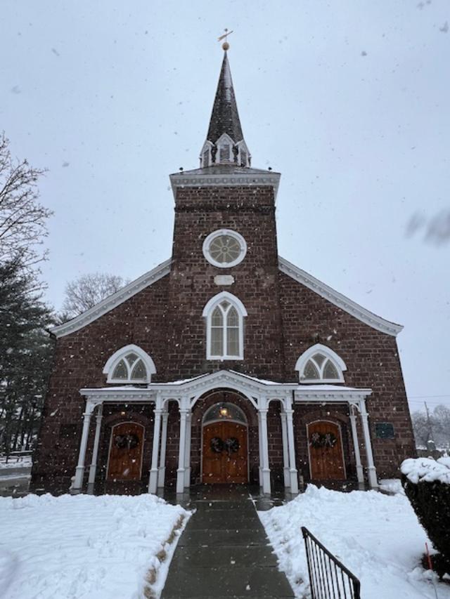 The outside of the church during the Epiphany in 2023. It looked like it was out of a Currier & Ives woodcut.