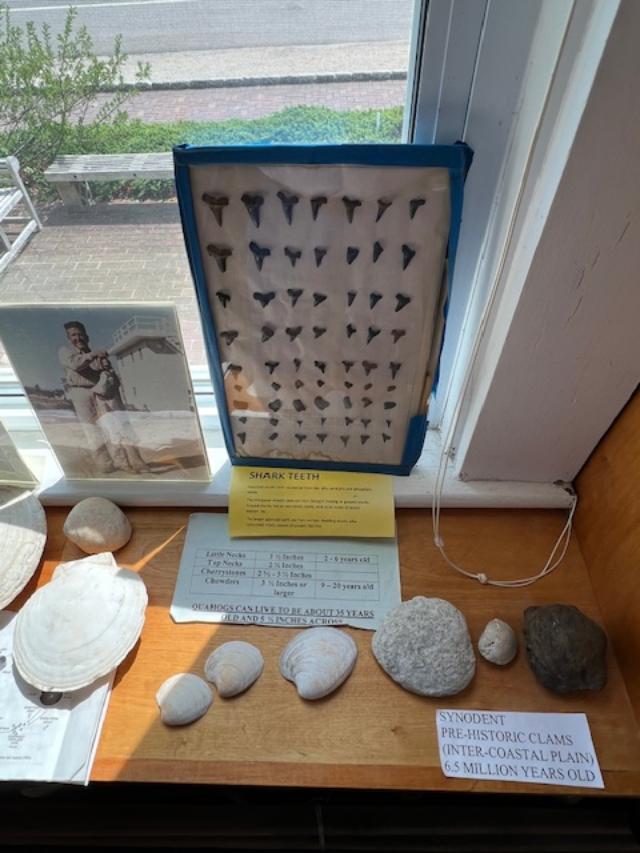 Photo display on historic sites in Beach Haven and pictures of the original library