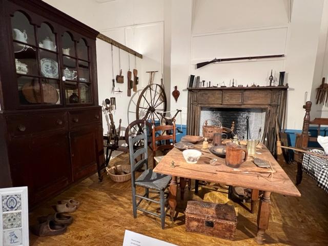 The Early Dutch Farmhouse Kitchen & Dining Room features one of the first beds that has no mattress but constructed by a series of ropes that are tightened. The tour guide explained that this might be where the expression “Sleep tight and don’t let the bed bugs bite” might have come from as the ropes needed to be tightened each evening before the family went to bed.