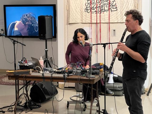 The “Zoom Out” exhibition was a selection of faculty works in the visual arts, painting, graphics and sculpture. One professor created an interesting piece of video art reworking the movie “Psycho” by Alfred Hitchcock.