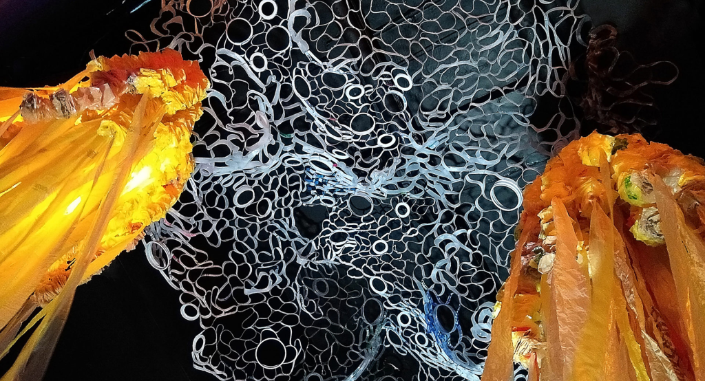 The exhibition that opened for the Fall semester 2019 is the ‘(Pro) Found Objects’, the Bergen Community College Faculty Exhibition. The exhibition features works from 19 different Professor/Artists whose work includes statuary, photos, paintings, video art and clothing construction.