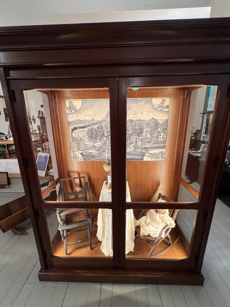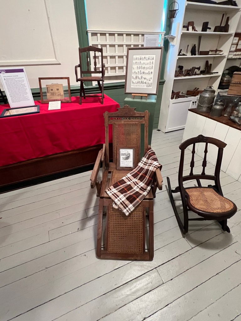 The exhibit also had early furniture hatches, chamber pots, a butter churner, various chairs that were manufactured in the area and several detailed decorative pieces.
