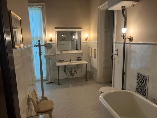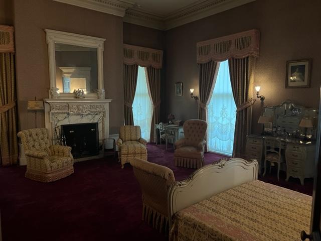 The tour will take you to three floors of the house: the first floor with the living room, dining room, parlors, and studies. Then there is the second floor with Fredrick, Louise and the guest family and single women rooms. The last floor you will visit is the basement workrooms, servant quarters and kitchen.
