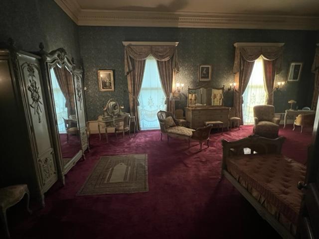 The bedrooms on the second floor are as elaborate as the rest of the house. While Fredrick’s bedroom was very plain in comparison to Louise’s who designed her bedroom after Marie Antoinette’s that she saw at Versailles. The room has a railing around it.