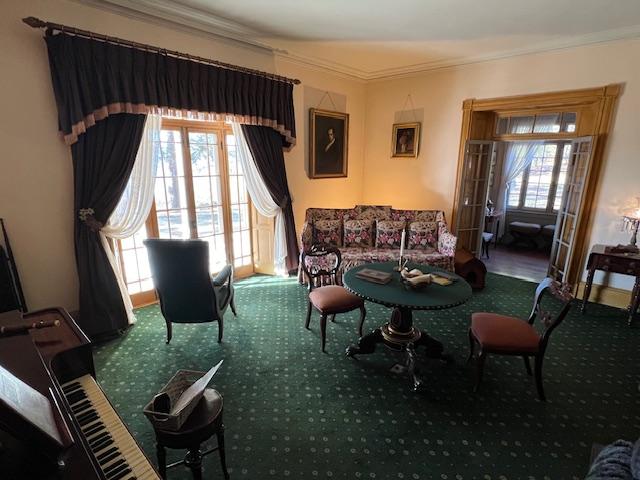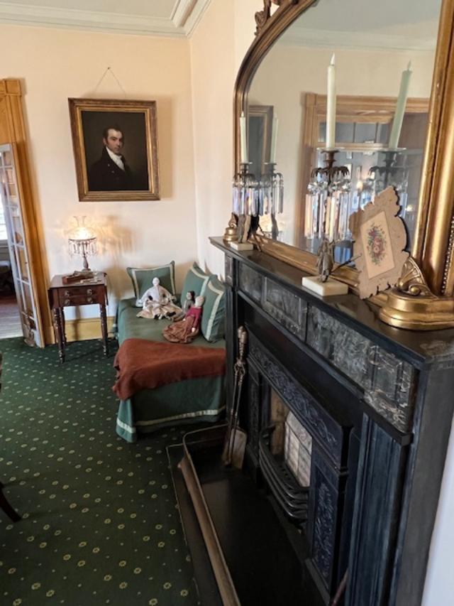 We then moved into the formal parlor where the family would have entertained everyone before dinner. The room was decorated with a beautiful tree and garlands.