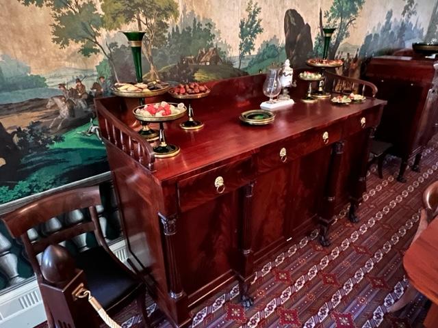 George Washington and other American icons looked toward the Classical ages of Greece and Rome in forging an identity for the young American Republic through architecture, furniture, textiles, ceramics and works of art. Neoclassical designs and motifs are distinguished through simple lines, a satisfying balance of symmetry and overall elegance that signals strength and democracy. In celebrating 200 years of the James Vanderpoel House, we present its Federal architectural excellence along with diverse material culture representing characteristics of the Federal Style and era in Columbia County and America (CCHS website).