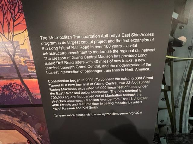 The newest exhibition is on the tunnel extension from Grand Central Terminal called the “Grand New Connection”: