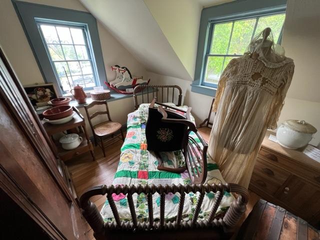 The upstairs rooms now house many of the home furnishings of the collection along with clothes and personal items of families that have donated them over the years. The upstairs is just finishing the renovation so things will have to be organized in the future but at least you can see the things that the Historical Society has in the collection.
