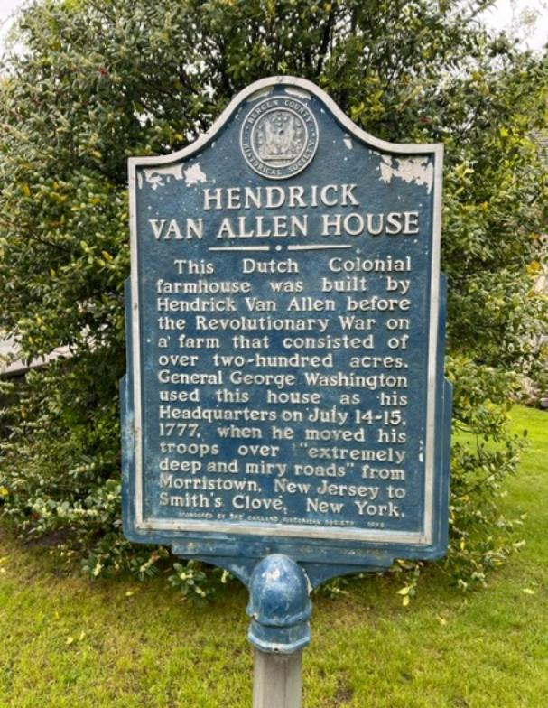 The Van Allen House was built around 1740 as the home of farmer Hendrik Van Allen. During the Revolutionary War, it served as the headquarters for George Washington on July 14, 1777. At the time, he moving his troops from Morristown, NJ to New York (Wiki).