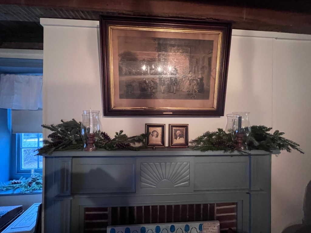 The house both inside and out was decorated for the Christmas holidays and had that early colonial look about it. Back then things were not as elaborate as the Victorian era and were simple pines, green and berries.