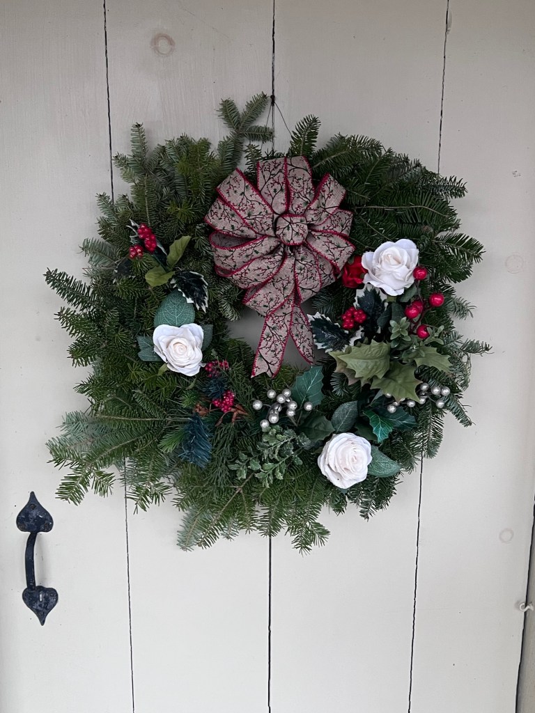 The grounds of the house and outside doors were decorated with wreaths and greens as well.