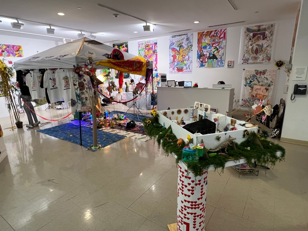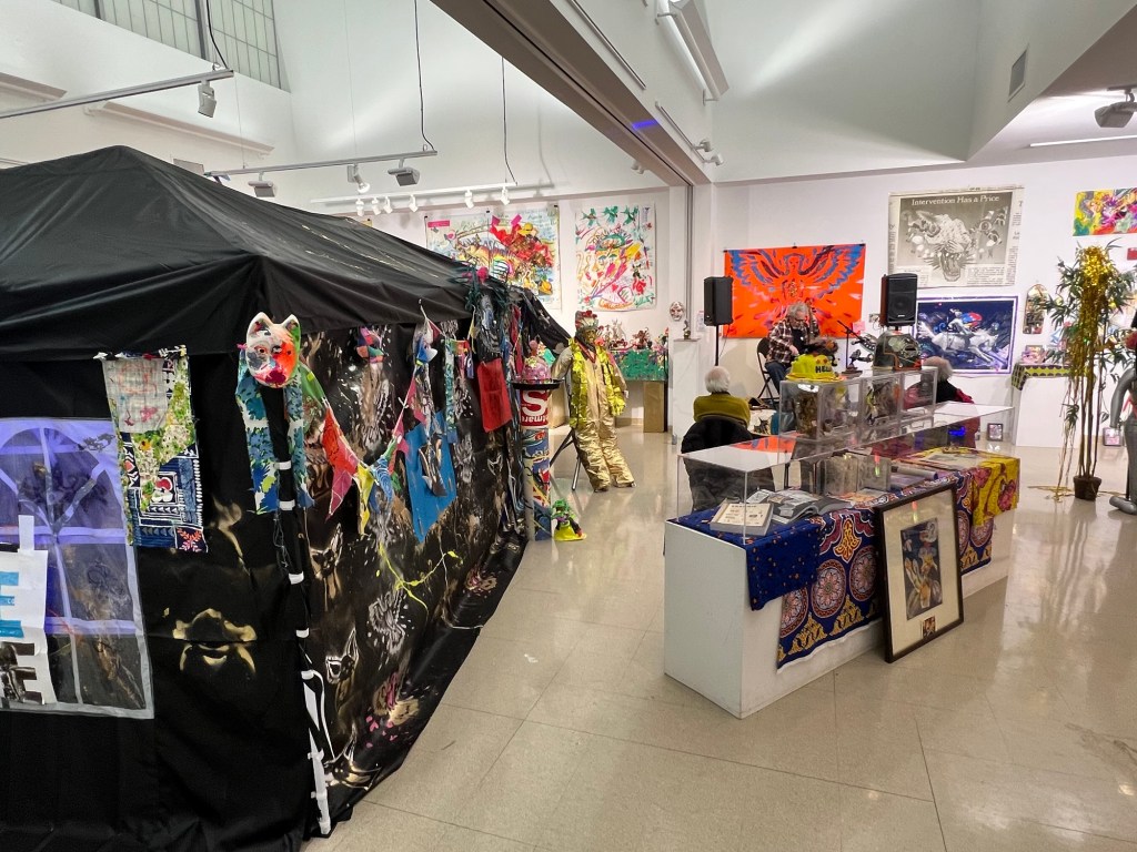 The front tent filled with artwork
