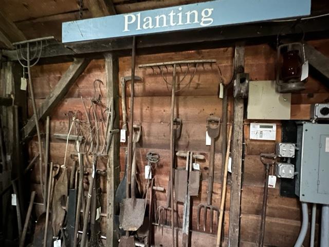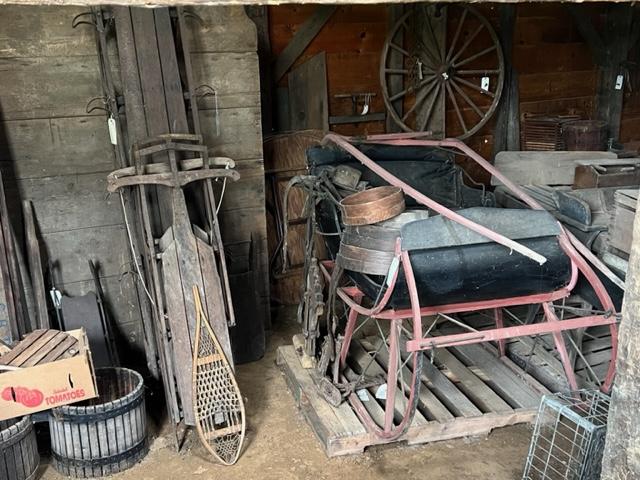 The barn off to the side of the house was moved to the property and holds a collection of period farm equipment.