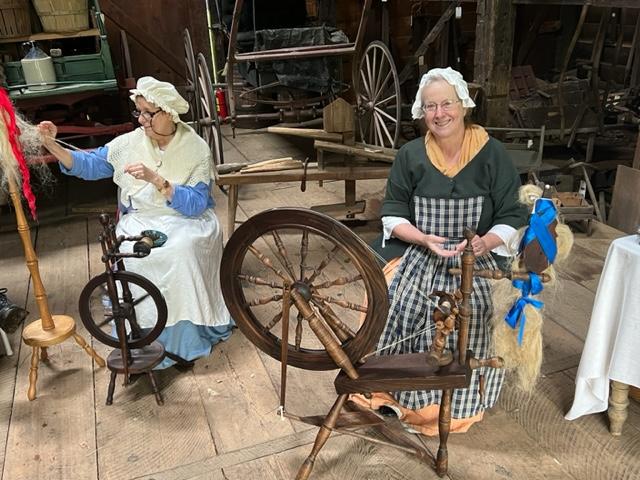 My first stop was at the barn where the ladies were doing a demonstration on spinning thread and we had a conversation of where the expression “Pop goes the weasel” came from (from the spun threat reaching its max and then the machine made a ‘pop’ sound). The ladies were demonstrating the way women spun yarn and made clothes and the work that it entailed.