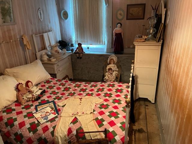 The upstairs rooms now house many of the home furnishings of the collection along with clothes and personal items of families that have donated them over the years. The upstairs is just finishing the renovation so things will have to be organized in the future but at least you can see the things that the Historical Society has in the collection.