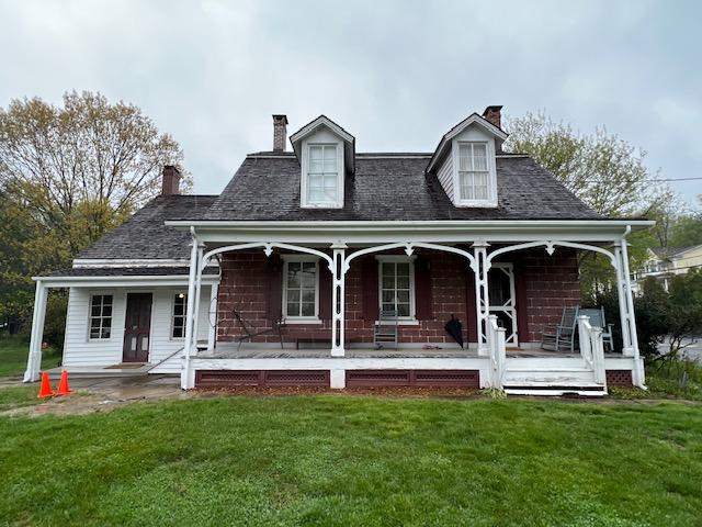 For inclusion in the Stone House Survey a building has to have at least two first story walls of pre-1840 stonework. The stone used in constructing the houses varies according to what as locally available. Many of the houses have reddish-brown sandstone walls but in the north-western section of the county rougher local fieldstone was utilized. Some houses have exterior walls of various types of stone and in some brick or frame exterior walls appear with stone ones. Frequently front facades display finer masonry work than do sides and rear. Usually the houses are 1 1/2 stories in height and have gable or gambrel roofs, sometimes with sweeping overhangs. Often there are side wings.