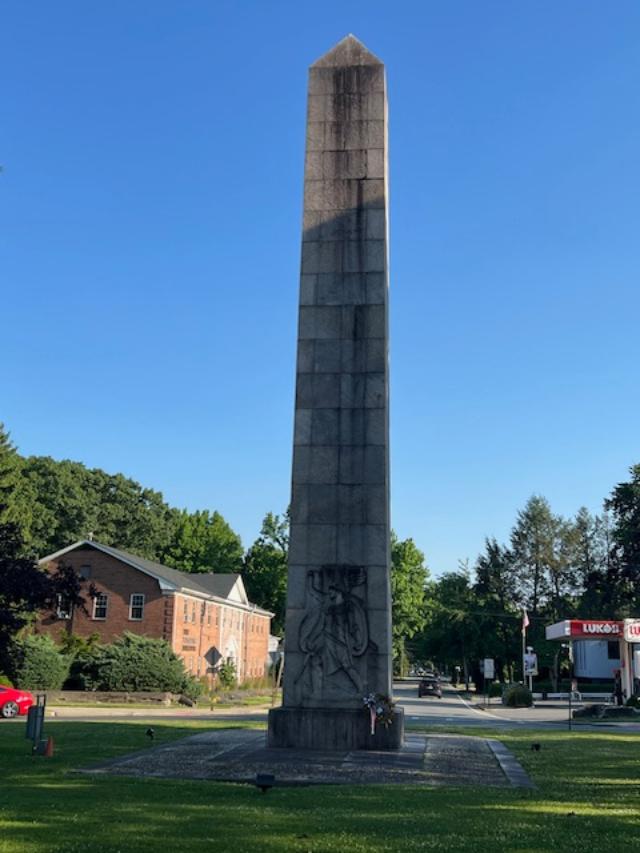 Disclaimer: This information was taken directly from a pamphlet from The Bergen County Division of Cultural Affairs & Historic Affairs in Bergen County, New Jersey. You must stop off on one of the side streets to see the monument and the information boards on the site are off to the west side of the circle. Try to walk around the monument on the circle itself to see the most detail.