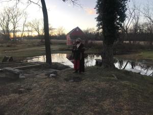 We then sang many of the carols with Linda leading the way by flute and guitar and then we had the lighting of the tree outside the home and hot chocolate on the lawn (which by that point was almost cold). Still it was an interesting night of lecture, song and history as we walked the grounds of the Historical Society at New Bridge Landing.